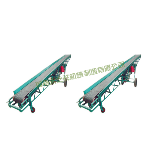 移动式胶带输送机适用于散状物料或成件物品的短途运输和装卸工作。采用钢管结构,轻巧美观,机动性好。转动装置为电动滚筒,并配有充气轮胎和钢轮两种行走轮。机长10米以上倾角可调。